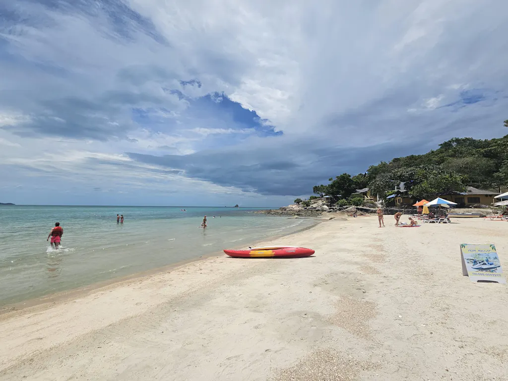 The first stop of today's beach tour is at a picturesque bay overlooking the neighboring island of Koh Phangan. Due to the ideal geographic location, the water here is often shallow and clear. Ideal for swimming, relaxing or looking around on the extensive beach.