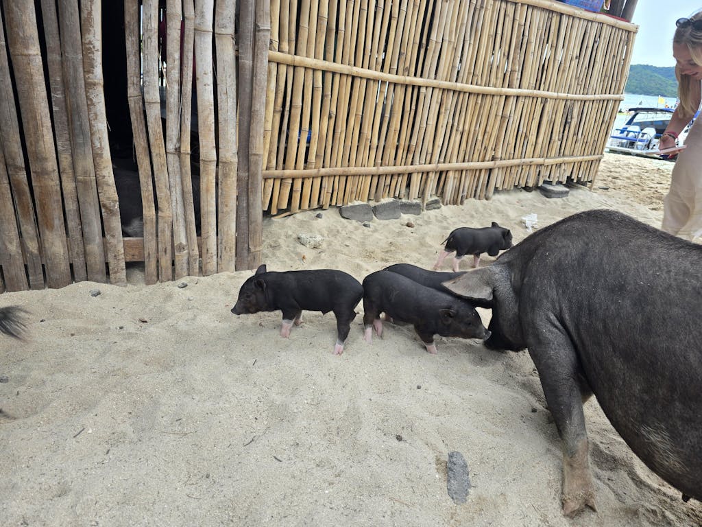 The last stop of our day trip is on the hidden and deserted island of Koh Mudsum. There are woolly pigs like those in the Bahamas that are on the beach. The clean white sandy beach and the wonderful backdrop are unique on the island. You have enough time to go swimming or just relax on the beach.