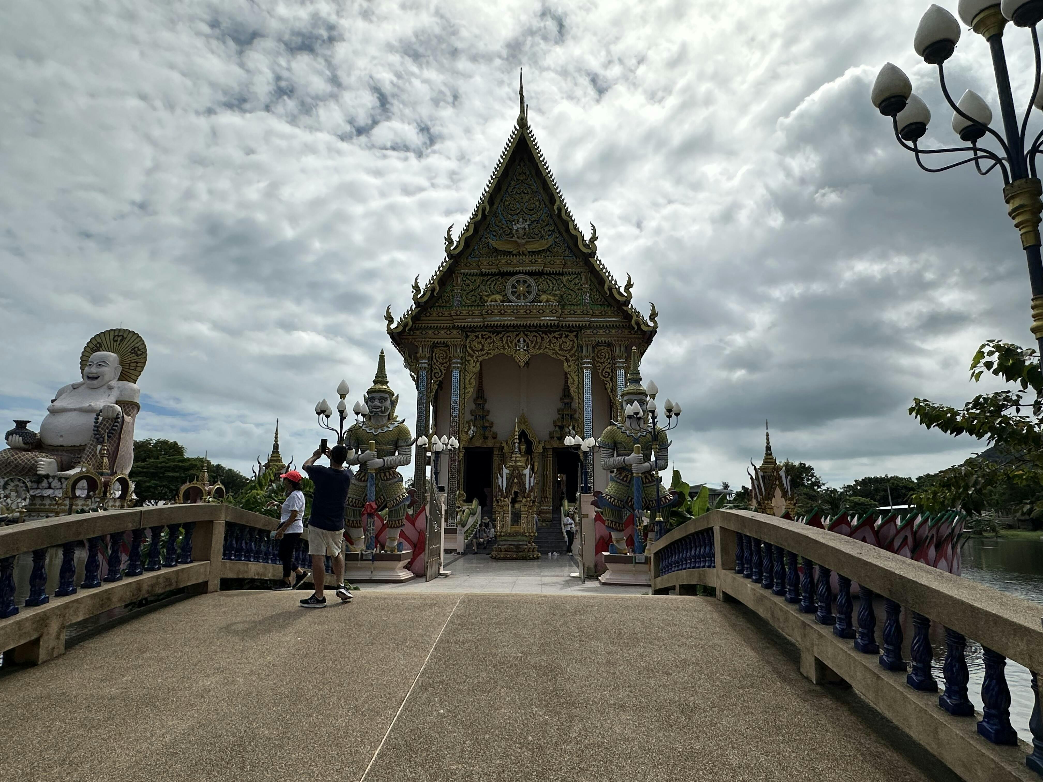 The 12 meters high Big Buddha was opened in 1972 and is the symbol of Koh Samui. It is located in the northeast of Samui on a small island (Koh Fan) which is connected to Samui by a bridge. From there you have a sensational view of the coast and the Bangrak pier.