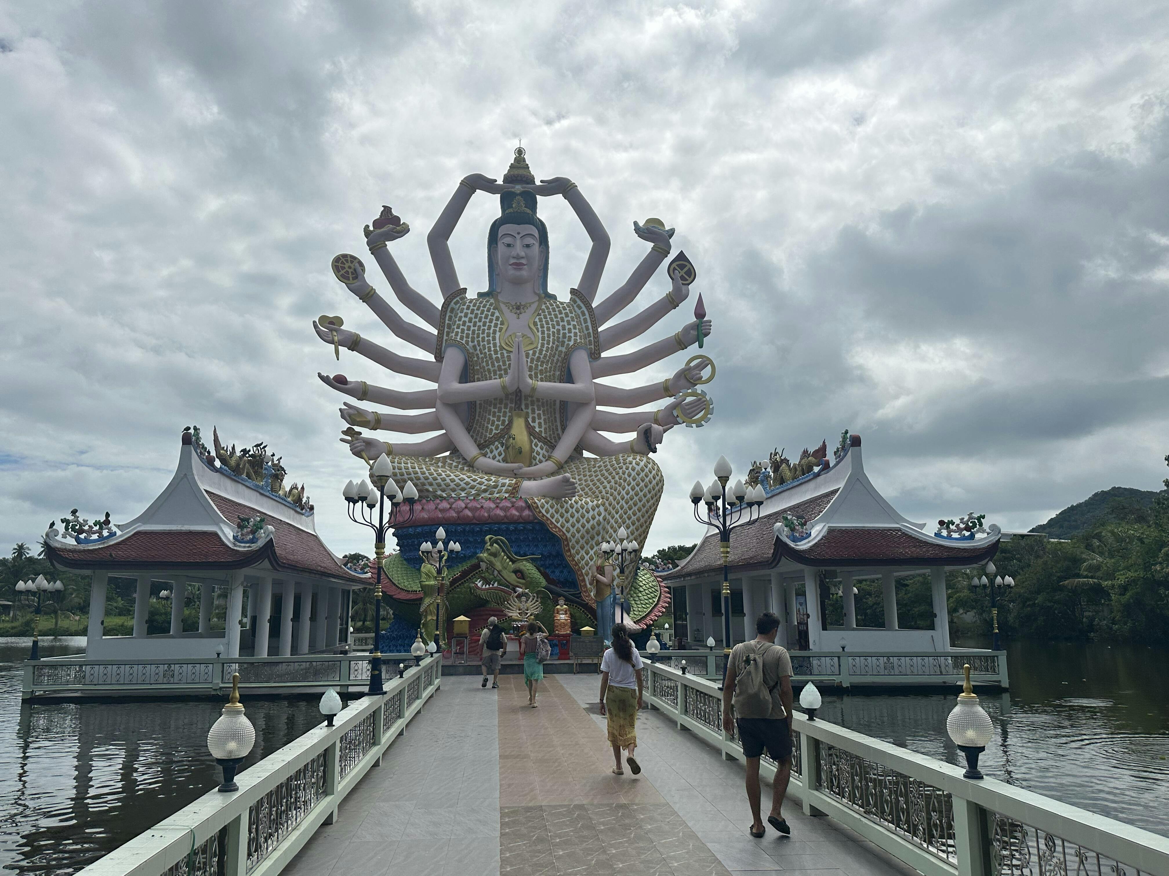 The Guan Yu Shrine, on the main road in the south of Koh Samui between Lamai and Hua Thanon, is a 16-meter bronze war statue that was built by a Chinese islander to celebrate Chinese heritage in 2016. It is a really impressive temple complex, with small souvenir stands and restaurants in the entrance area