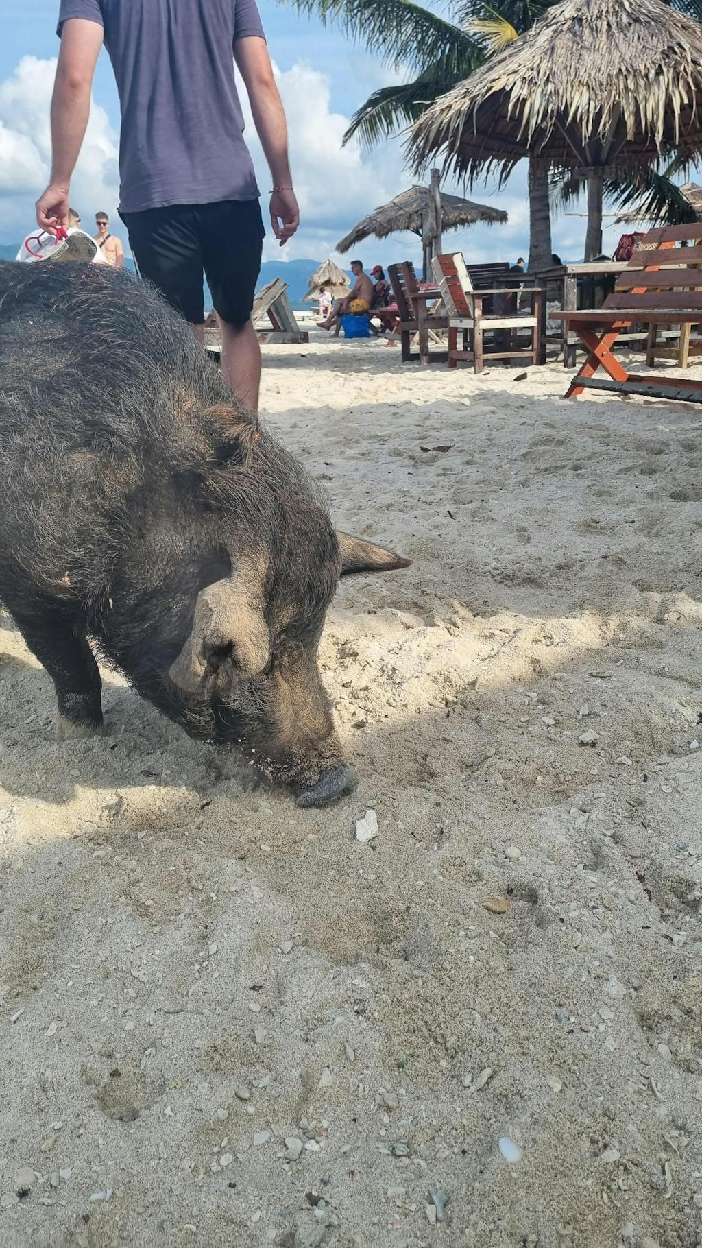 Here the world stands still because there is still no civilization, running water, or electricity. Amazingly, there are a few woolly pigs here on the white sand beach, like in the Bahamas. Enough time, enjoy some quality time, swim or relax on the beach.